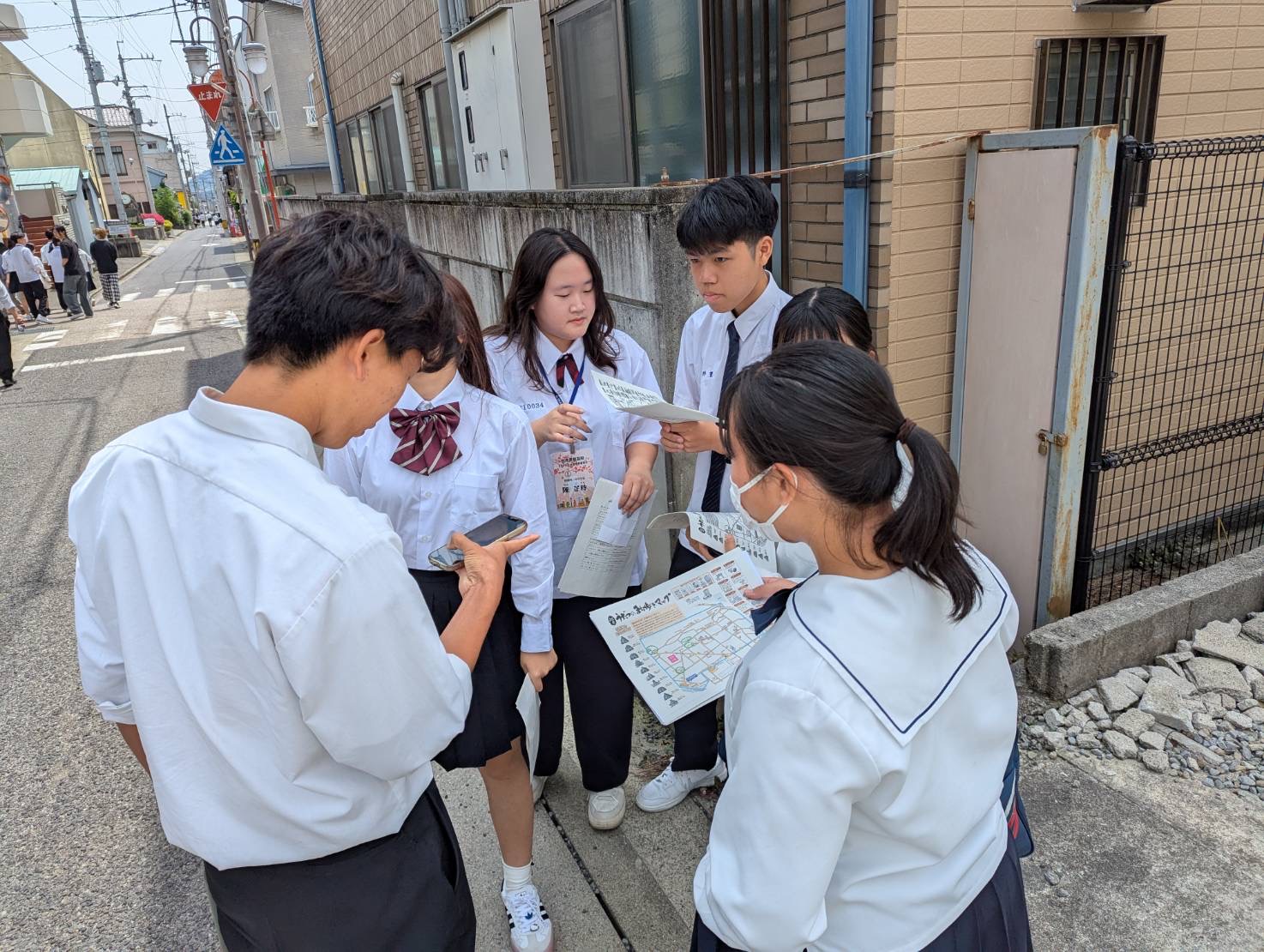 5月23日(金)に2年生探究科が、カフェフィロの松川さんと山本さんを講師に招いて哲学ウォークを行いました。哲学ウォークとは、池田高校周辺を歩いて、与えられた偉人の言葉と合致する場所を見つけるという活動です。